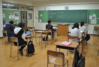 本日、2年生の(選択)地学基礎は、タブレットPCを活用した授業でした。