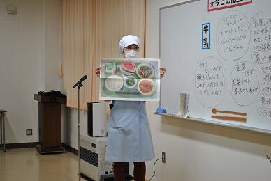 栄養士さんから、給食室の利用の仕方と「食」の大切さについて、お話をいただきました。